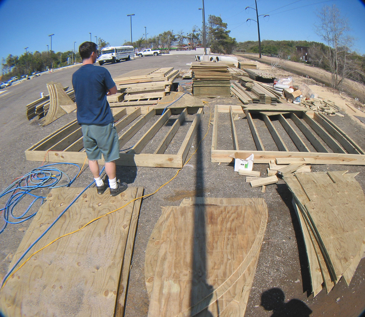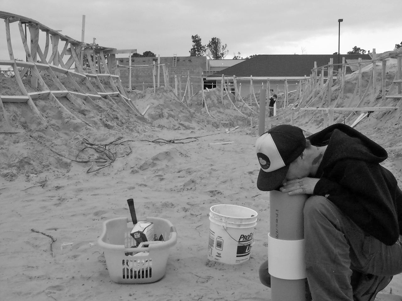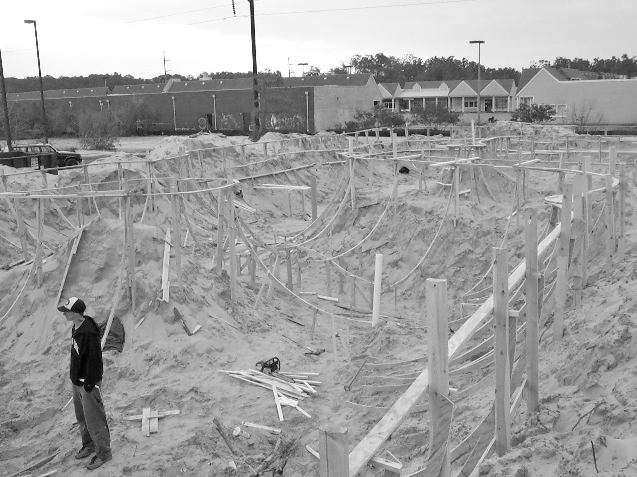 There is a new skate park coming to the Outer Banks. The Town of Nags Head and the YMCA each put up a hundred grand. The Y is adding on to their already new Nags Head Facility. The membership interest far exceeded their expectations so they decided to upgrade the facilities. There will be a new additions on to the gyms, a new outdoor pool, and a waterslide with a giant fifteen foot deep pool. (nope, forget it, one foot trannies to vert.) Along with all this madness will be a skate park. It will be roughly 15,000 feet. The Y contacted some of the local skate crew and we helped them formulate a plan to get the most park for their money. After we talked shop for a while we decided that the park should be a hybrid of wooden/skatelite street elements and a concrete bowl area with lots of flow. Charley and Sam Buxton desiged the street course, with the help of Jesse Davis working the 3D computer drawings, to represent the latest in street course design. They decided to hire Marc Corbett (of Wanchese fame) and crew to build the street. Marc’s bid for the wooden/skatelite course was within budget and next we set out to hire the concrete crew. We contacted some of the country’s top park builders. Grindline of Washington state, Team Pain of Fl., Wally Holiday of CA, Woodstock of NY, and American Skateparks (Omer) of MD. In the end it was Grindline that came in within our budget and next came the design meetings. This would be Grindline’s first East Coast park.